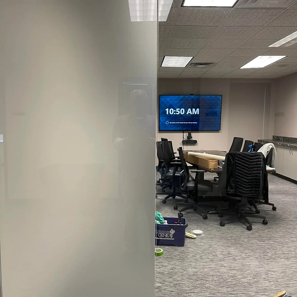 Adds personality and privacy to any space through frosted, etched, or patterned finishes that still allow light to enter. It enhances interior design, divides open areas, and provides visual interest for glass doors, meeting rooms, and bathrooms.